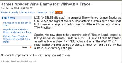 Spader to Jay Leno, Oct. 8, 2004: (referring to the morning after the Emmys) I watched the tape - because I was so interested in what the hell I said when I got up there - so I watched the next day. And, you know, I'd see other people, you know, like Matthew Broderick when Sarah Jessica Parker won. Or like Diane Sawyer when Mike Nichols won. They're all very calm and collected and cool - and very, you know, sophisticated and everything. And you look over and they cut to my group - it's like I brought in a family of gypsies that are, like, crying and wailing and screaming and laughing and clutching each other. The seat fillers behind are getting involved. You can't see, but just off to the edge there in the aisle they've slaughtered a goat.